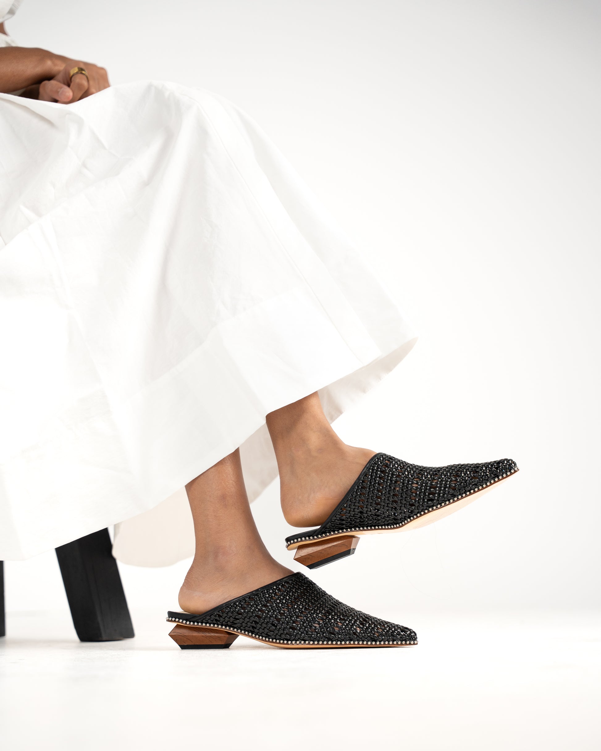An elegant design crafted with intertwined leather, blending style and comfort in every step.